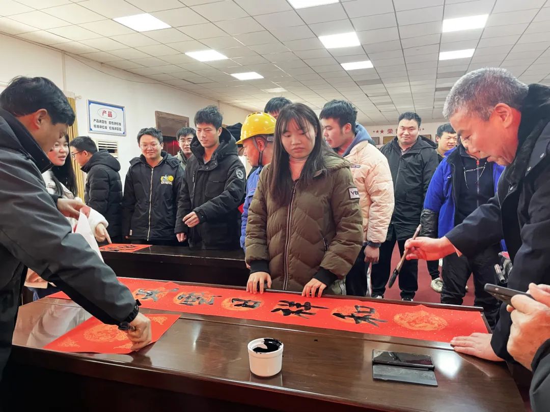 活動由【恒欣股份】工會主席許丹、團總支書記李媛媛主持,書法家們揮毫潑墨,書寫著新春祝福,員工們將書法家們團團圍住、迎新請福,捧著墨汁未干、字跡飄香的春聯(lián)和福字,個個喜上眉梢,贊不絕口,暖暖的年味兒在空氣中彌漫,一幅幅書法作品或蒼勁有力,或飄逸瀟灑,緊貼時代精神,為即將到來的春節(jié),增添了濃濃的節(jié)日氛圍。