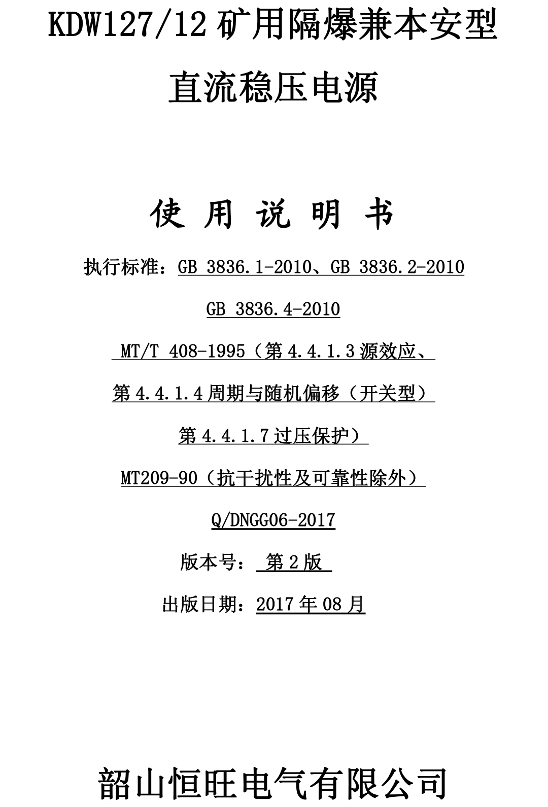KDW127-12礦用隔爆兼本安型直流穩(wěn)壓電源說(shuō)明書(shū)