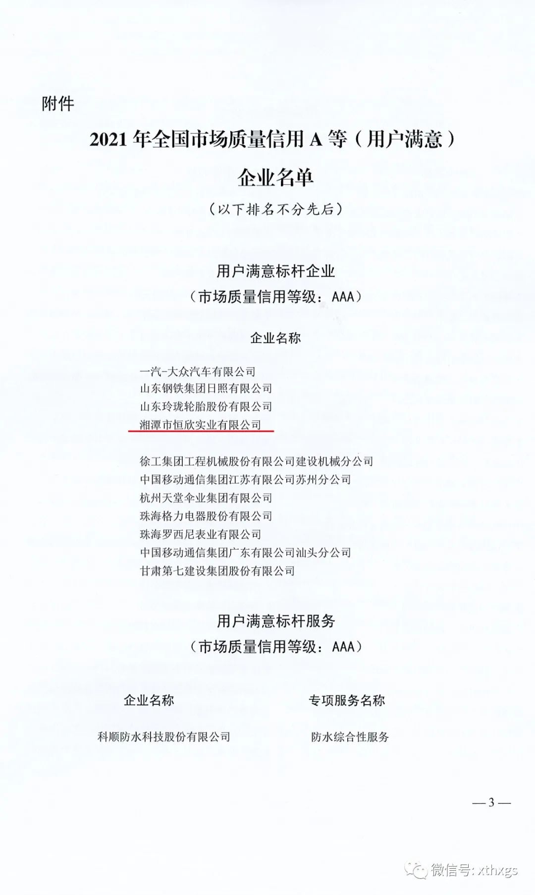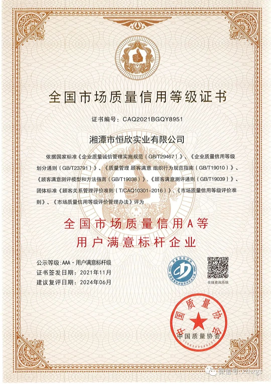 xiao12666@163.com【湘潭恒欣】獲評用戶滿意標(biāo)桿企業(yè)