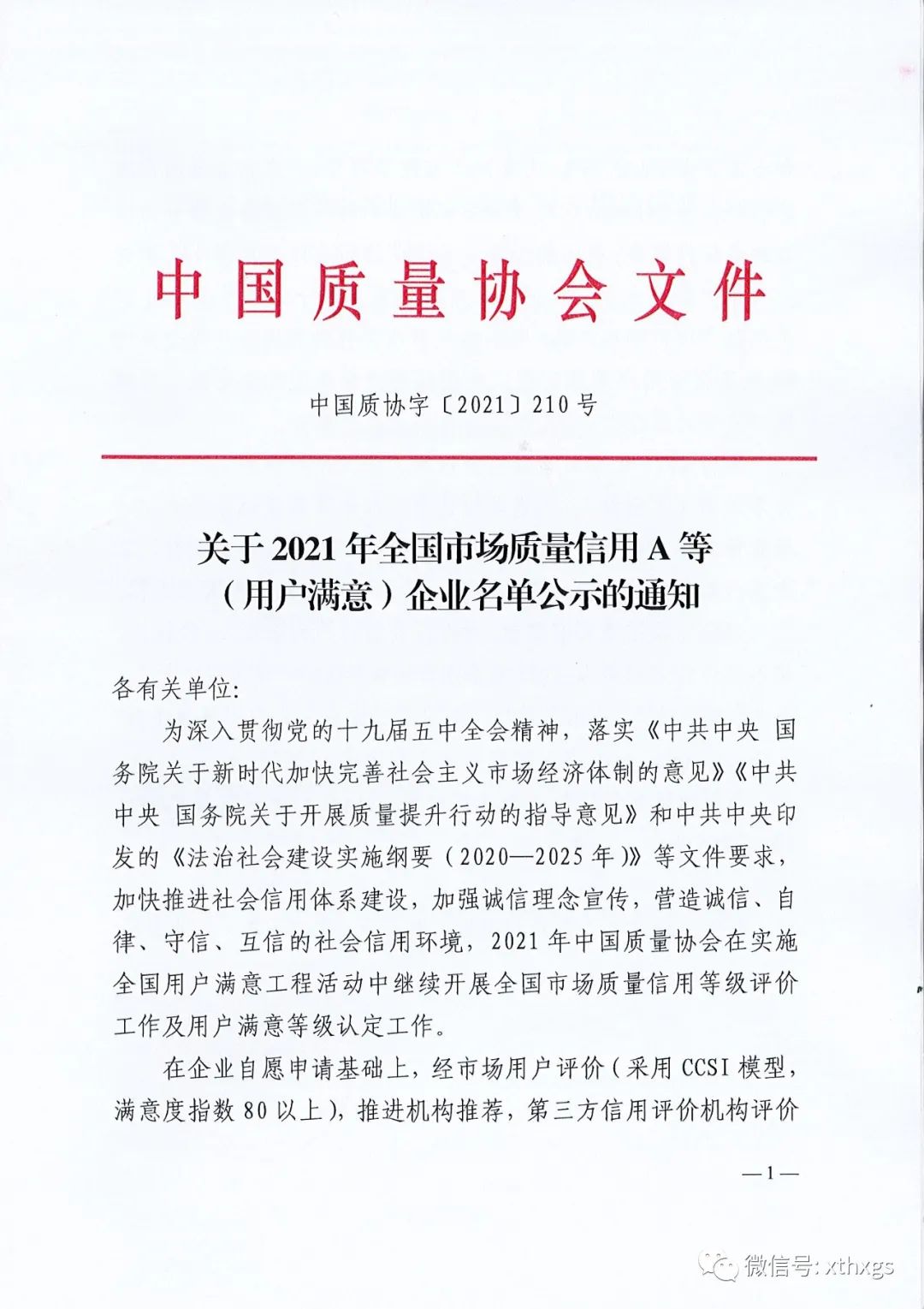 此次全國市場質(zhì)量信用A等(用戶滿意)企業(yè)認(rèn)定工作由中質(zhì)協(xié)組織,其目的是加快推進社會信用體系建設(shè),營造誠信、自律、守信、互信的社會信用環(huán)境。