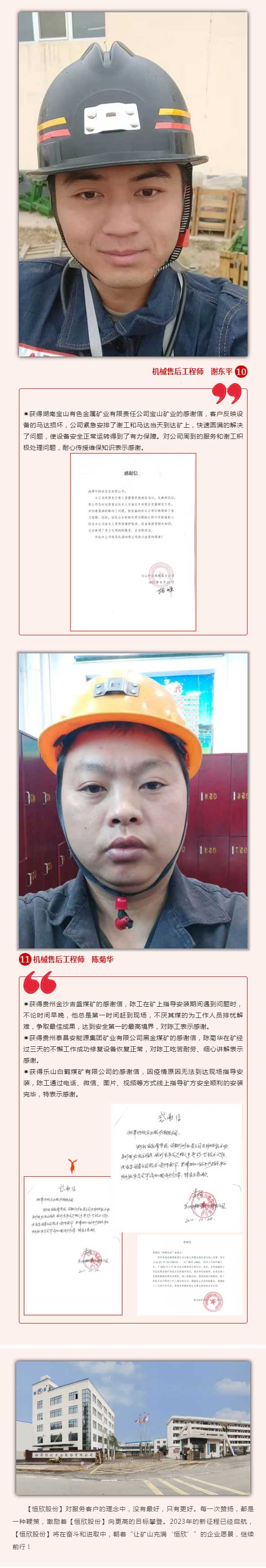 現(xiàn)實(shí)的困難并未阻擋我們服務(wù)的熱情,我們始終把“客戶至上”的理念謹(jǐn)記于心篤之于行。當(dāng)我們收到來(lái)自全國(guó)各地客戶發(fā)來(lái)的表?yè)P(yáng)信和感謝信時(shí),我們售后團(tuán)隊(duì)中每一位成員都是喜悅和自豪的,辛勞的付出得到了客戶的肯定,一切都是值的。同時(shí)也非常感恩客戶對(duì)【恒欣股份】的認(rèn)可,讓我們有信心來(lái)年一定把服務(wù)做得更好。