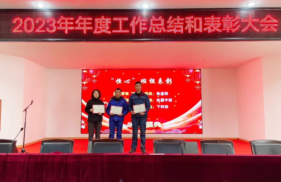 在表彰環(huán)節(jié),對2023年度的3個先進班組和57名優(yōu)秀員工、標兵和勞模分別進行了表彰,感謝他們在過去一年中勤勉工作、拼搏進取,為公司實現(xiàn)銷售訂單、營業(yè)收入、公司凈利潤等經(jīng)營指標的大幅增長,起到了表率作用和大的貢獻!同時,在表彰過程中,部分優(yōu)秀員工代表紛紛上臺感言,分享了各自敬業(yè)愛崗的工作情懷和職業(yè)操守,深深感恩【恒欣股份】給員工們打造的良好平臺,不僅給400多名員工的就業(yè)機會,而且讓全體員工的福利待遇年年增長!并表示將會繼續(xù)發(fā)揮先進表率作用,以更加飽滿的熱情投入到今后的工作中,為公司持續(xù)健康的高質(zhì)量發(fā)展作貢獻!