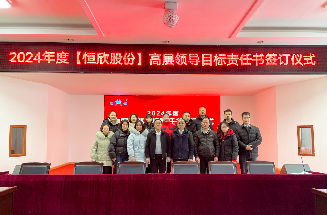 鳴鼓掛帥錨目標(biāo),滿弓勁發(fā)啟新程!1月24日下午,【恒欣股份】舉行2024年度目標(biāo)責(zé)任書簽訂儀式。儀式由董事長肖公平主持,副董事長肖連平、總經(jīng)理肖龍武和全體高層領(lǐng)導(dǎo)、中層干部參加了簽訂儀式。