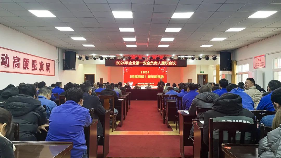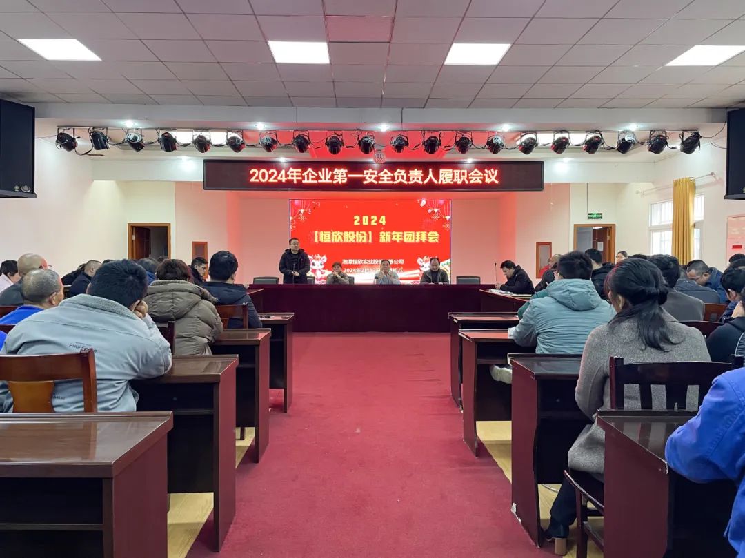 團(tuán)拜會上,董事長肖公平致新春賀詞,向全體員工致以節(jié)日問候和美好祝福。肖董事長表示,回首過去2023年我們收獲了累累碩果,希望2024年新的征程,能夠收獲更美好的未來。在春節(jié)期間,為客戶保履約,依然堅守在崗位上的員工表示欽佩,他們肩扛責(zé)任擔(dān)當(dāng),解客戶之憂,排客戶之難,用拼搏與奉獻(xiàn)書寫新春最美“敬業(yè)?!?,完美詮釋了【恒欣股份】“四品文化”,并現(xiàn)場連線了出差的三名售后技術(shù)工程師吳工、左工、蘇端志師傅、熊恩泉師傅,分別為他們送去了新春的祝福和問候?!竞阈拦煞荨坎粩喟l(fā)展壯大離不開像他們一樣默默奉獻(xiàn)的廣大員工,對為【恒欣股份】建設(shè)發(fā)展作出貢獻(xiàn)的員工們表示衷心感謝。