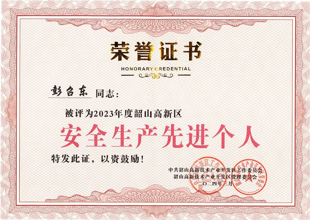 在會上的表彰環(huán)節(jié),【恒欣股份】分別被授予韶山市2023年度安全生產(chǎn)和消防工作優(yōu)秀企業(yè)和高新區(qū)2023年度“畝產(chǎn)論英雄”先進企業(yè),安全管理員彭召東和技術(shù)工程師范永鑫分別榮獲高新區(qū)安全生產(chǎn)先進個人和科技創(chuàng)新先進個人。