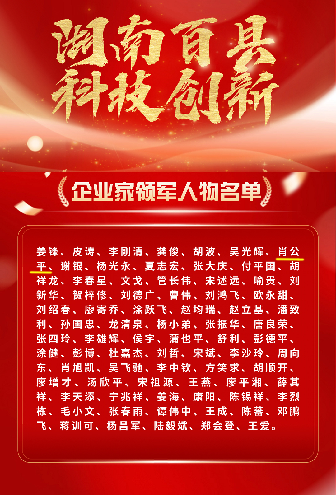 5月13日,由湖南省科技廳、湖南日報(bào)社共同主辦的“創(chuàng)新型湖南建設(shè)宣傳展示活動(dòng)”之“創(chuàng)新湖南主題宣傳暨2023-2024年度湖南百縣科技創(chuàng)新成果宣傳展示活動(dòng)”評選結(jié)果揭曉。其中,【恒欣股份】董事長肖公平入選“企業(yè)家領(lǐng)軍人物”名單。