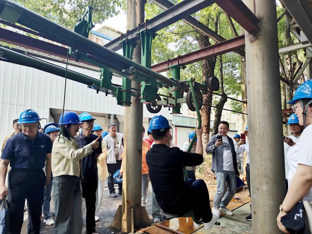 在顧總監(jiān)的引導(dǎo)下,考察團(tuán)先后參觀(guān)了企業(yè)榮譽(yù)展廳、數(shù)控車(chē)間、機(jī)器人焊接車(chē)間及無(wú)人駕駛技術(shù)展示區(qū)等重點(diǎn)區(qū)域。在單軌吊無(wú)人駕駛試驗(yàn)區(qū),考察團(tuán)成員駐足觀(guān)看設(shè)備運(yùn)行演示,對(duì)產(chǎn)品的智能無(wú)人駕駛技術(shù)表現(xiàn)出濃厚興趣。顧總監(jiān)詳細(xì)介紹了單軌吊的產(chǎn)品型號(hào)分類(lèi)、驅(qū)動(dòng)系統(tǒng)及搭載的AI攝像頭等技術(shù)優(yōu)勢(shì),并結(jié)合實(shí)際案例分享了該產(chǎn)品在礦山領(lǐng)域的應(yīng)用成果。并在無(wú)人駕駛運(yùn)行監(jiān)控中心通過(guò)現(xiàn)場(chǎng)專(zhuān)業(yè)人員的操作,監(jiān)控屏幕實(shí)時(shí)顯示單軌吊無(wú)人駕駛運(yùn)行情況,考察團(tuán)一行對(duì)無(wú)人駕駛技術(shù)給予了高度評(píng)價(jià),對(duì)單軌吊的適用范圍廣、靈活性強(qiáng)、運(yùn)輸效率高、安全可靠等優(yōu)勢(shì)贊不絕口。隨后,在猴車(chē)試驗(yàn)區(qū)域,考察團(tuán)成員興致勃勃地乘坐"猴車(chē)"進(jìn)行體驗(yàn),通過(guò)親身體驗(yàn),大家對(duì)該設(shè)備簡(jiǎn)便的操作方式和穩(wěn)定的運(yùn)行性能給予了充分肯定。