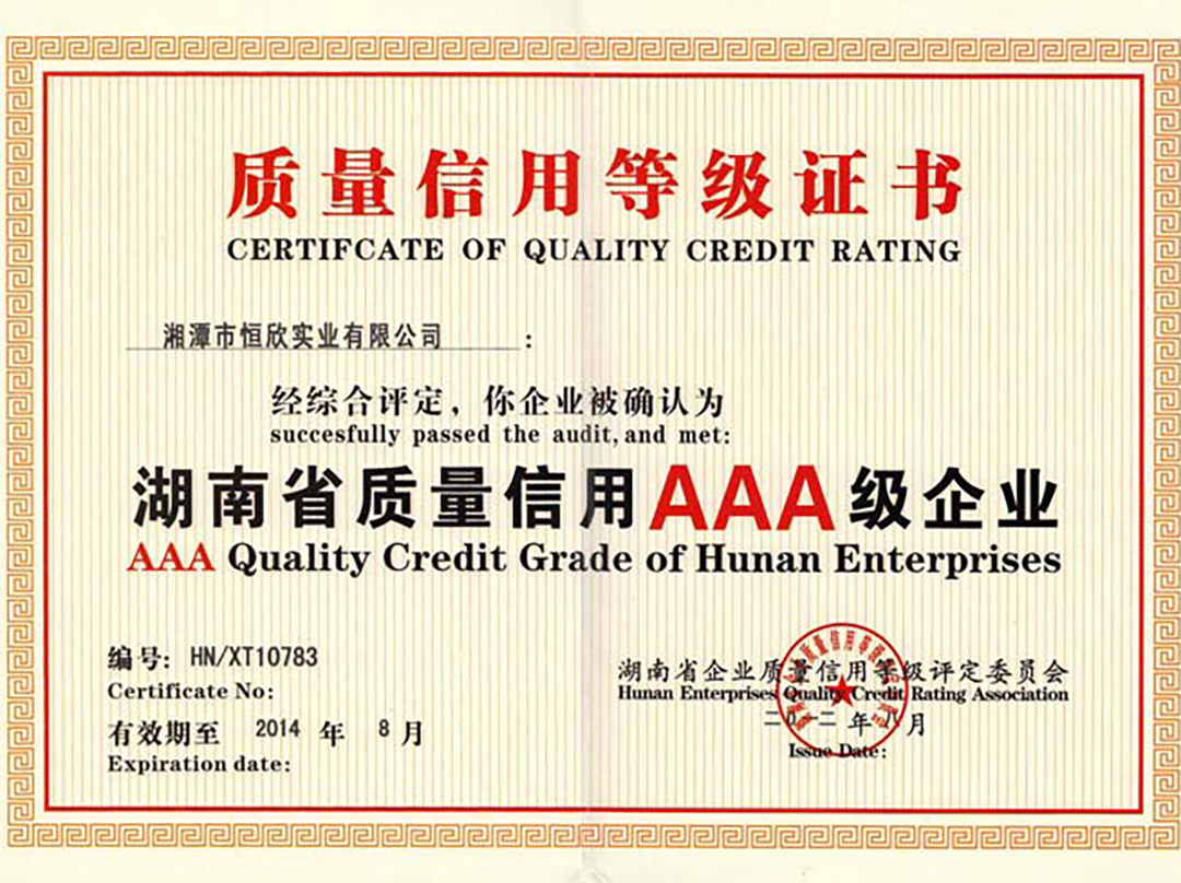 xiao12666@163.com熱烈慶祝湘潭恒欣順利通過湖南省質(zhì)量信用AAA等級認(rèn)證
