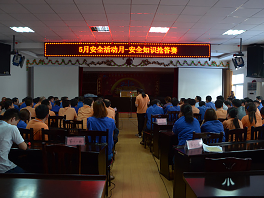 公司除開展5月專項安全生產(chǎn)月活動以外,在日常工作中時刻不忘“安全就是生命,生命就是一切”的安全理念,為此,除設備安全部負責公司安全生產(chǎn)管理以外,還成立了安全管理分會進行日常安全巡檢工作,并與各生產(chǎn)班組長簽訂了安全生產(chǎn)責任狀,每月組織員工進行安全生產(chǎn)培訓,并通過公司內(nèi)部廣播系統(tǒng)、月報、宣傳欄、QQ、微信平臺等方式進行安全生產(chǎn)知識宣傳,使安全生產(chǎn)意識深入每位員工心中。