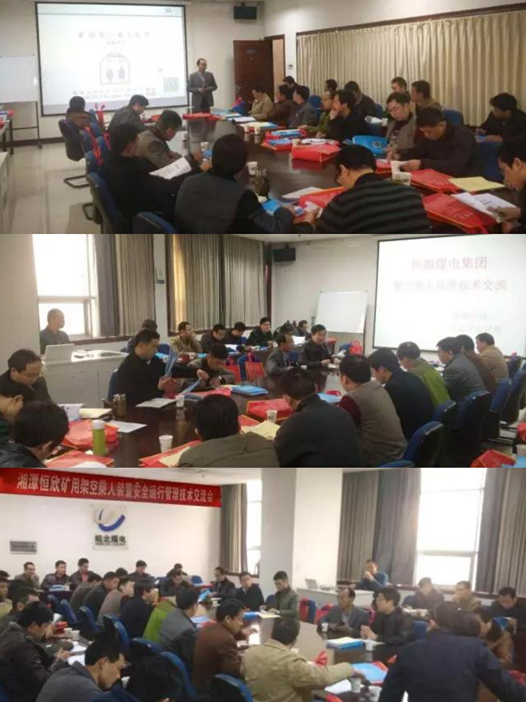 2016年4月22日,【湘潭恒欣】的技術中心應【河南能源永煤公司】邀請在永城市永煤公司總部大樓進行了“架空乘人裝置的技術交流會”,現(xiàn)場與會有集團公司機電部梁部長,永煤光大公司、陳四樓礦、順和礦、城郊礦、新橋礦、車集礦等機電礦長、科長、隊長以及技術人員50多人參加了技術交流與培訓。永龍公司、鑫龍公司、永登公司、永華能源、永貴能源、永錦公司等單位組織相關管理和技術人員近300人通過遠程視頻進行技術交流。