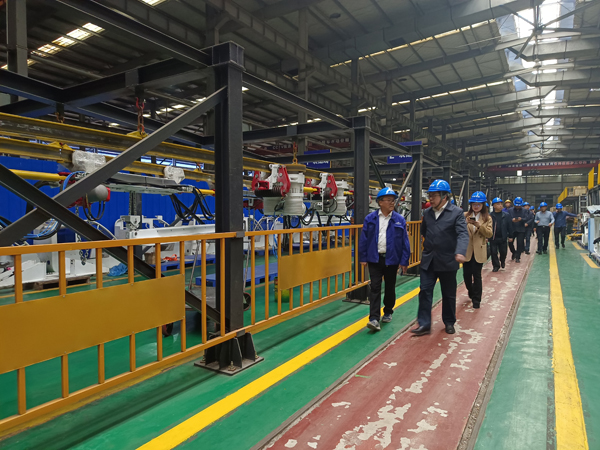 在肖董事長的陪同下,伍副市長一行先后參觀了榮譽展廳、數(shù)控自動化生產(chǎn)線、礦用單軌吊試驗區(qū)、物聯(lián)網(wǎng)遠程集控中心等區(qū)域。在礦用單軌吊試驗區(qū)肖董事長向伍副市長一行匯報了產(chǎn)品技術(shù)優(yōu)勢及市場前景;在物聯(lián)網(wǎng)遠程集控中心通過高清屏向伍副市長一行展示了礦山井下產(chǎn)品實時運行情況和運行數(shù)據(jù)。