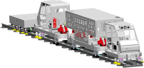 機車的動力單元,為每個驅動部提液壓油。主要包括防爆柴油機系統(tǒng)、液壓控制系統(tǒng)、電氣控制系統(tǒng)、自動滅火系統(tǒng)等。