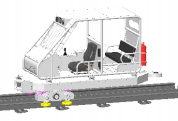 駕駛室由AI路況探測機器人、駕駛室、駕駛室底架、卡軌裝置等組成。其中駕駛室內包含路況顯示屏和工況顯示屏,操控箱等。當配置3驅和4驅時,另兩驅動單元安裝在駕駛室底架上,減小機車長度。