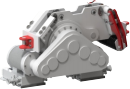 齒軌驅(qū)動(dòng)裝置通過(guò)電機(jī)帶動(dòng)減速機(jī),減速機(jī)帶動(dòng)齒輪與軌道齒條傳動(dòng),實(shí)現(xiàn)機(jī)車運(yùn)行,減速機(jī)內(nèi)自帶工作制動(dòng),驅(qū)動(dòng)部同時(shí)配有一組安全制動(dòng)裝置。