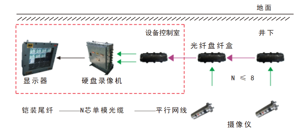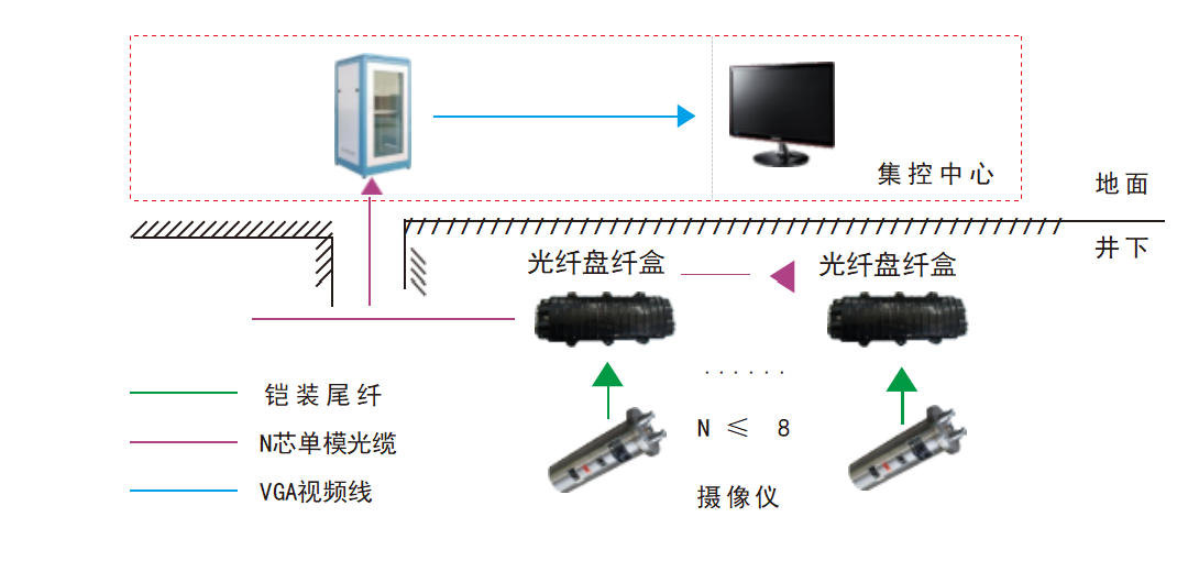 地面至井下分站:采用礦用單模光纜最遠(yuǎn)傳輸距離為20km;
