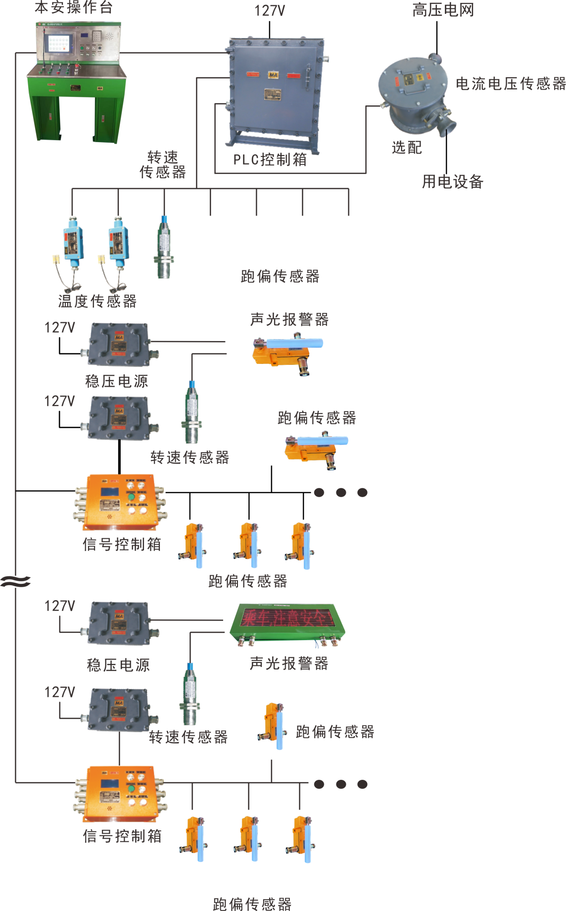 ZJK127(B)礦用無極繩絞車控制裝置適用于煤礦井下無極繩絞車運(yùn)輸?shù)谋Wo(hù)和控制,采用進(jìn)口PLC可編程控器與CAN總線通訊,既節(jié)省了煩瑣的控制線路,又能更準(zhǔn)確、安全及快捷地控制設(shè)備的運(yùn)行與停止;制動(dòng)油壓和油箱溫度及減速機(jī)溫度的檢測(cè),有效地對(duì)無極繩連續(xù)牽引車起主要作用的液壓站與減速機(jī)進(jìn)行監(jiān)控,維護(hù)系統(tǒng)更安全運(yùn)行。