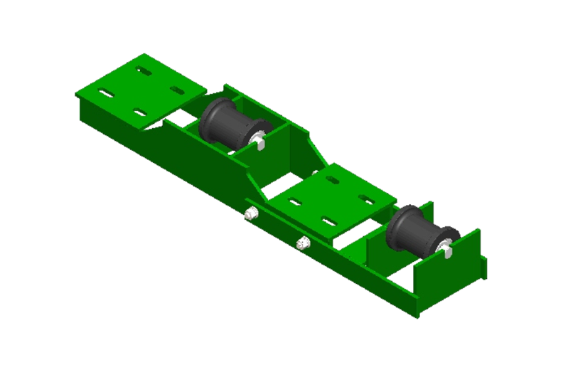 為適應(yīng)起伏變化的巷道,避免鋼絲繩摩擦巷道底板,在線路中的平巷或上變坡點安裝托繩輪組,起到減小磨損,延長鋼絲繩使用壽命的目的。根據(jù)鋼絲繩在軌道的布置方式分為雙繩托繩輪組和單繩托繩輪組兩種。